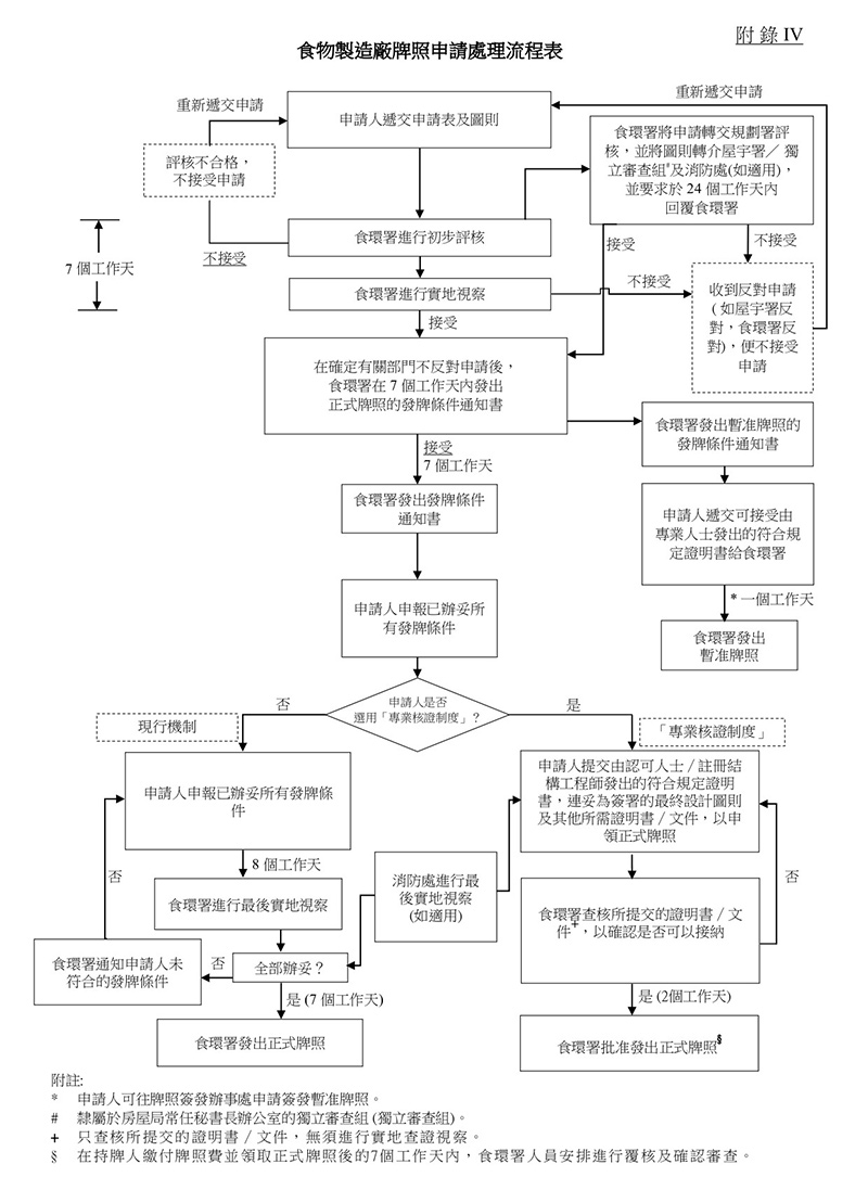 1. 於呈遞申請後,食環署約在三個星期裡對所有圖則詳細審閱,以證明符合規定,將於10個工作天內通知申請人。(3個工作天)